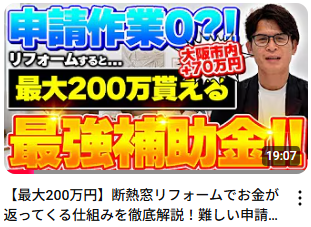 窓を断熱することで暑さ、寒さが大幅に改善されるという事と省エネになります。また補助金で国や市から支援をいただける、という状況なので一押しのリフォームです。その中でどの補助金を活用すべきかというと、大阪市にお住いの方は大阪市住宅省エネ改修促進事業を活用。補助率がかなりいいのでできる限り最大限活用すべきだと思います。部屋ごとの申請なので大阪市の補助では補えない部屋に関しては先進的窓リノベを活用するとよいでしょう。