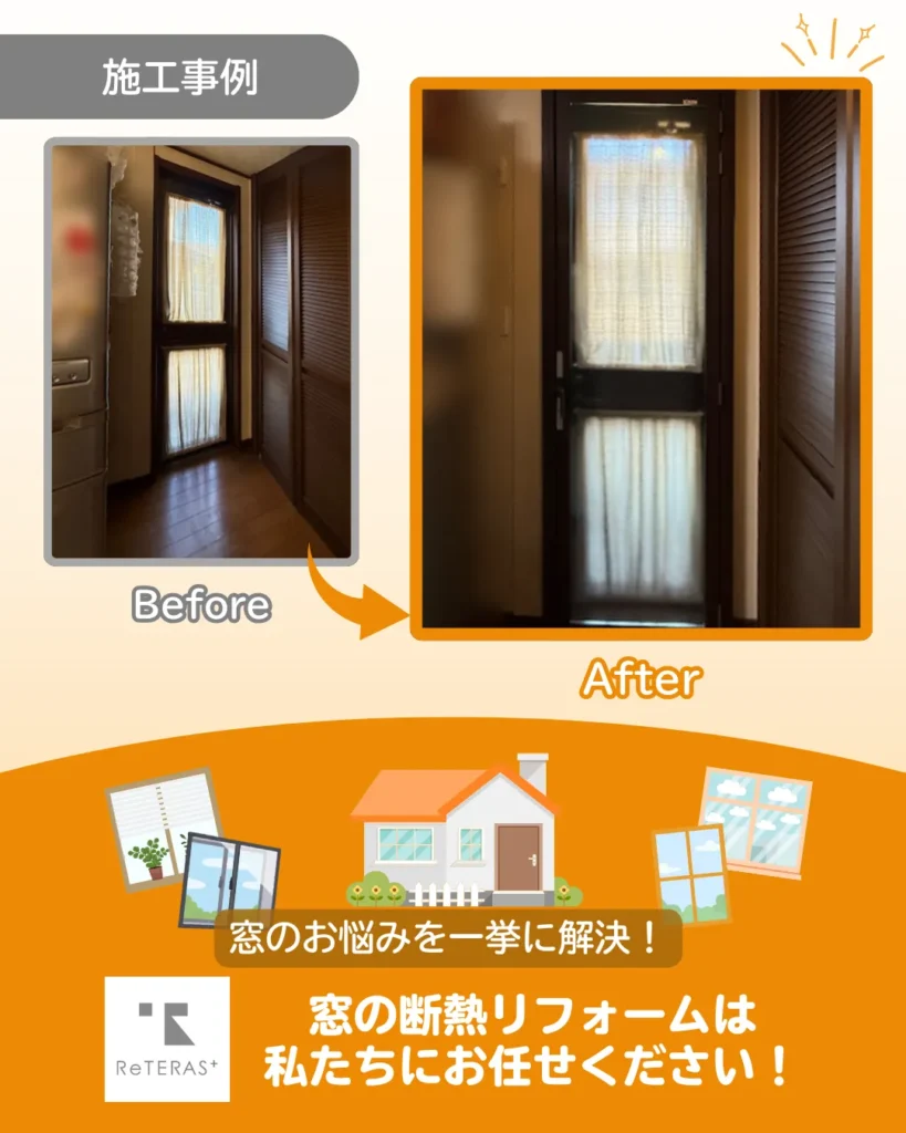 本日も最後までお読みいただき、ありがとうございます。大阪市で「断熱リフォーム」に取り組む私たちは、内窓や玄関の窓断熱を通じて、冷暖房の光熱費を抑える補助金活用を含めたご提案を大切にしています。「住まいが変われば暮らしが豊かに」──この想いを胸に、快適な住環境づくりをこれからもサポートしてまいります。