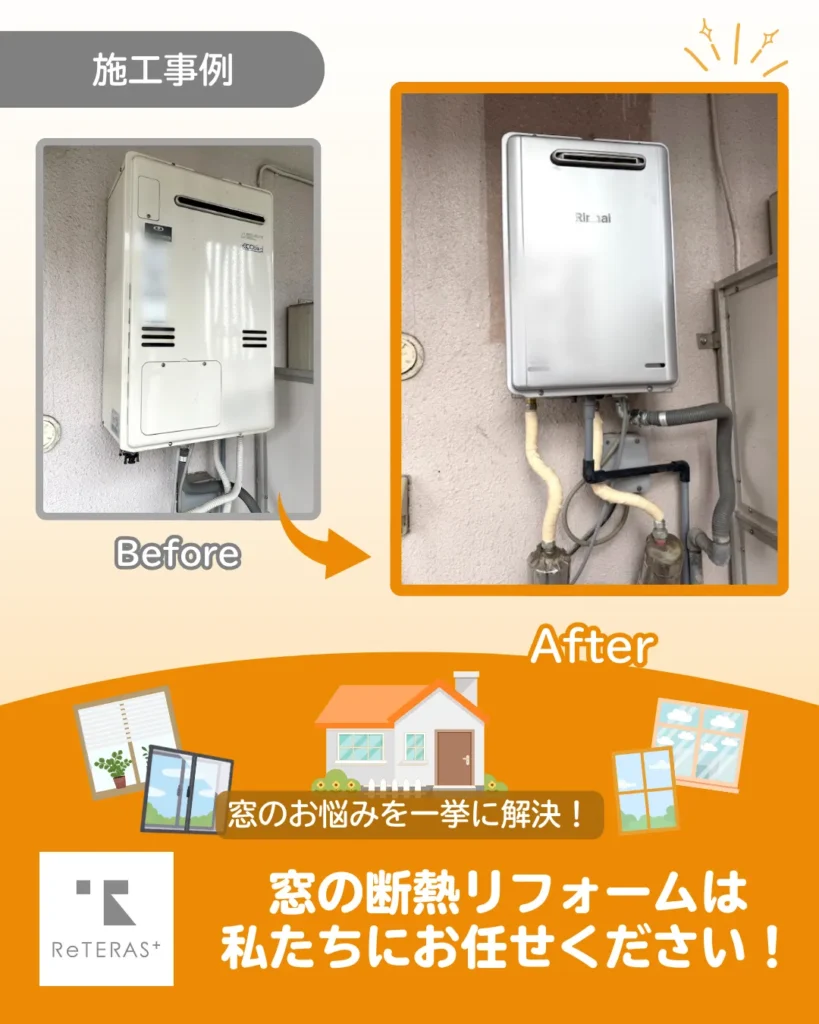大阪市阿倍野区で大阪市住宅省エネ改修促進事業を活用した内窓(二重窓)断熱リフォーム及び高断熱浴槽、高効率給湯器交換工事。