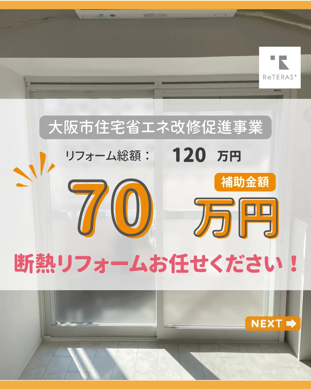 大阪市の内窓(二重窓)断熱リフォームならリテラスプラスへ。補助金対応各種代理申請、施工実績多数。暑さ・寒さ・防音・結露対策におすすめ